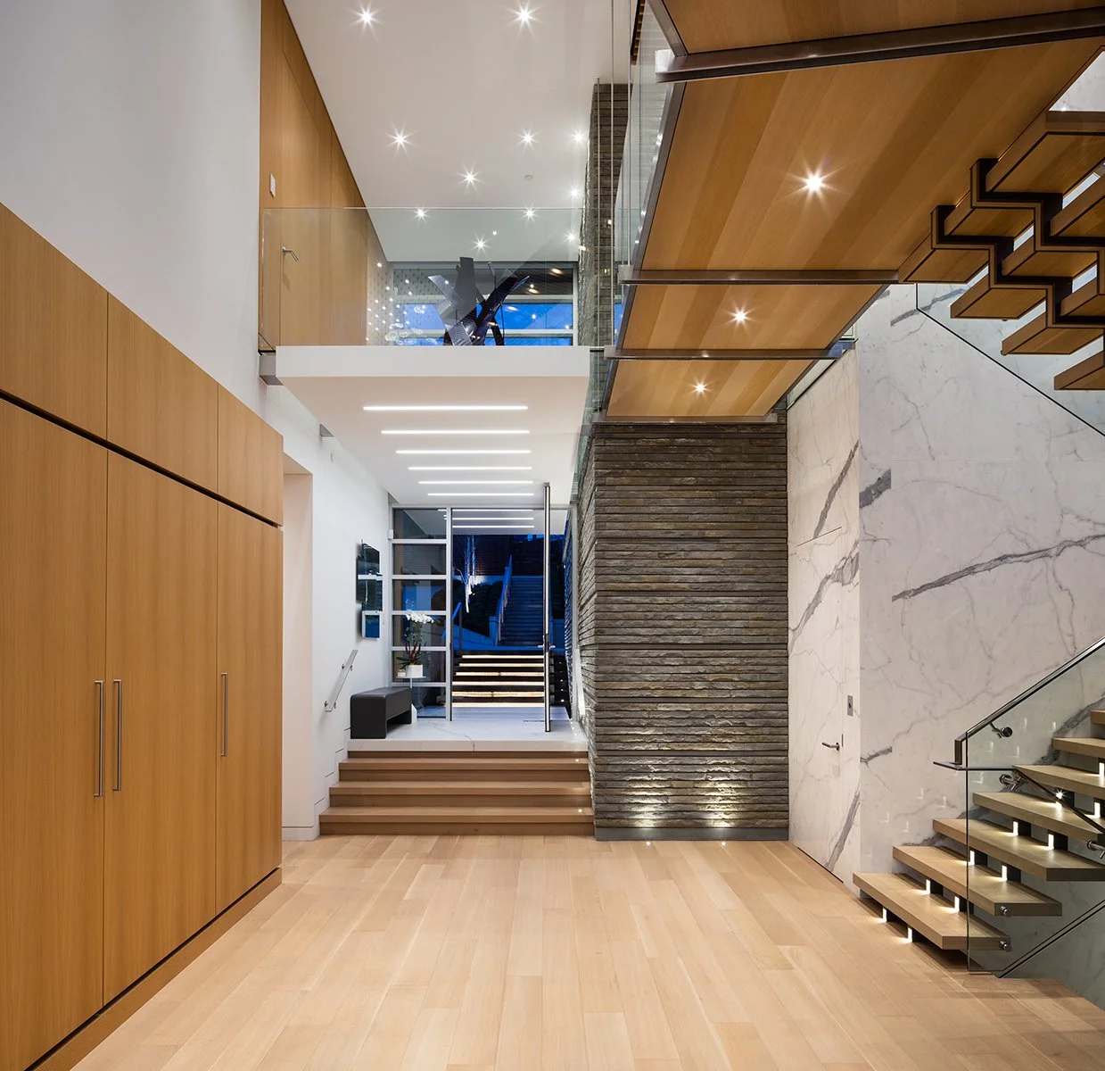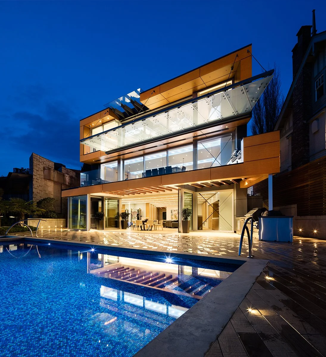 A refined waterfront residence inspired by the fluidity of water and its connection to nature. Designed to frame expansive ocean views, the home seamlessly integrates indoor and outdoor living through carefully orchestrated spatial flow and natural materials. Cascading water features and a dramatic floating entry create a tranquil arrival experience, while meticulously crafted interiors, featuring book-matched marble, custom lighting, and bespoke millwork, express a timeless sense of luxury and precision.